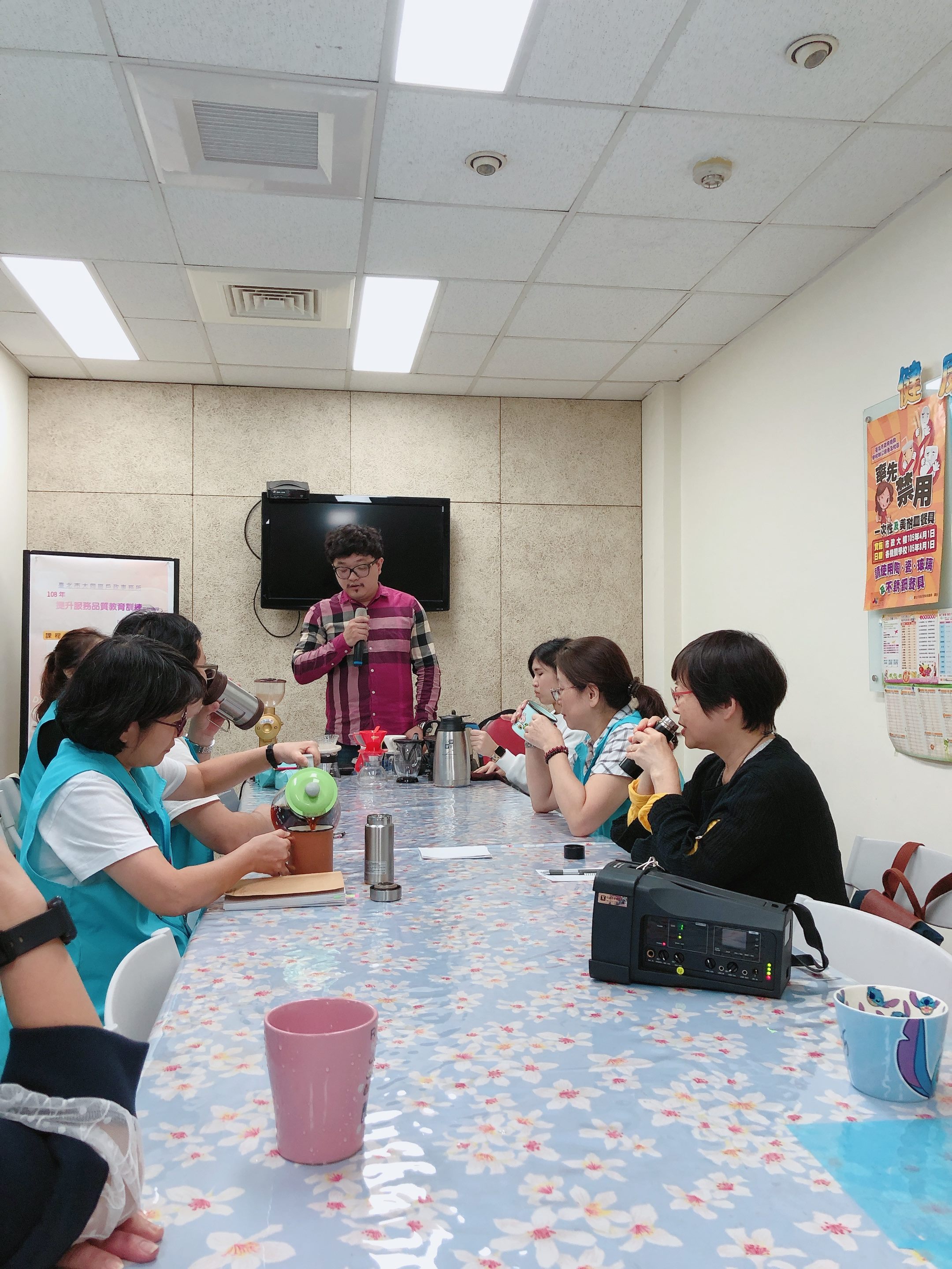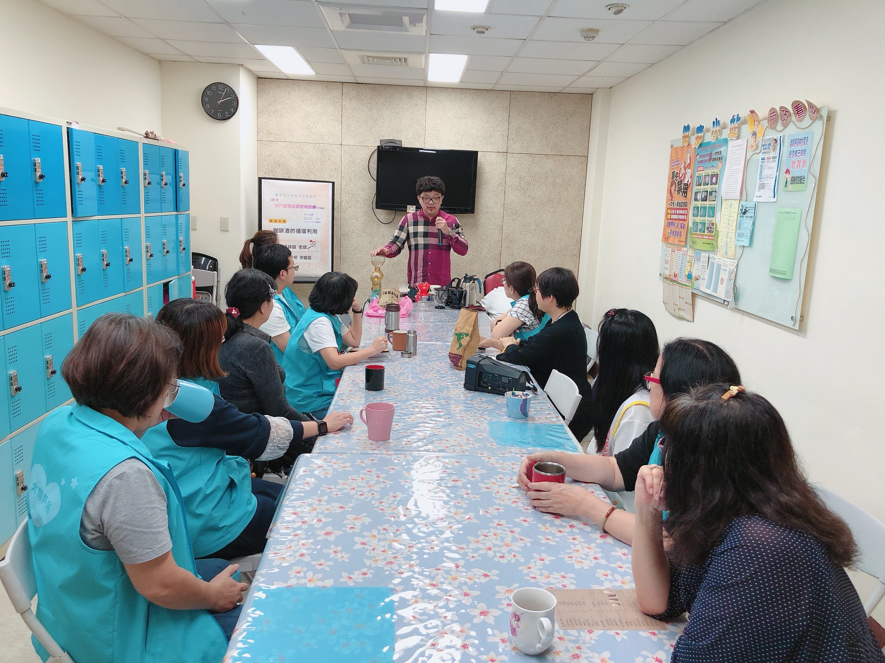 本所於108年11月21日辦理「咖啡渣的循環利用課程」,介紹咖啡沖泡及品嚐之基本技法與知識,及咖啡渣的循環與利用(譬如在環境除臭上的妙用) ,以達到改善本所辦公環境的目標 。